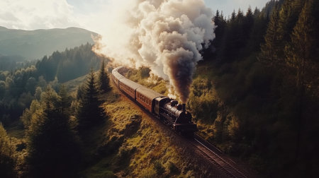 A Steam Train Journeying Through the Lush Forest: An Exquisite Display of Nature's Beauty. Concept Train Travel, Nature Photography, Forest Exploration, Vintage Locomotive, Scenic Route