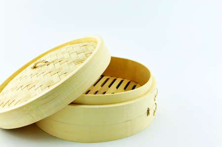 Bamboo steamer - container of bun , dim sum , steamed dumpling