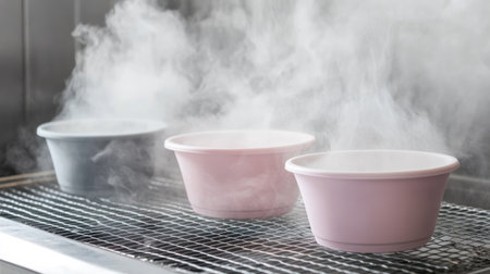 Three colorful cooking pots release steam in a modern kitchen setting, creating a warm and inviting atmosphere perfect for culinary moments.