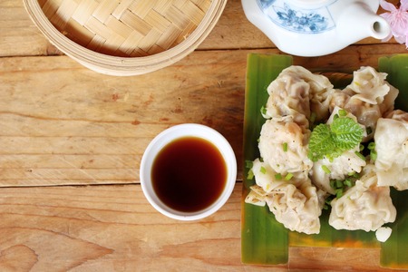 Chinese steamed dumpling with sauce is delicious
