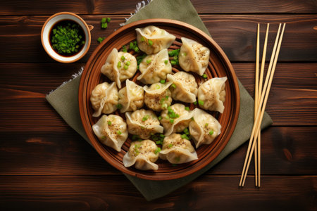 Chinese Dumpling top view. generative ai High quality