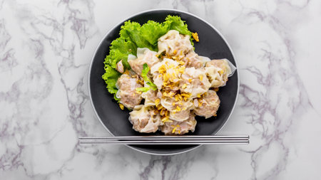 Boiled dumpling breakfast asia cuisine on marble background