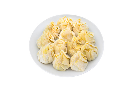 Siomai, raw steamed pork dumplings on white background