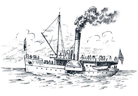 Hand drawn ship in the sea vintage style