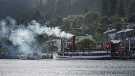 old tradition boat floating in wakatipu lake queen town south island new zealand important traveling landmark to visiting