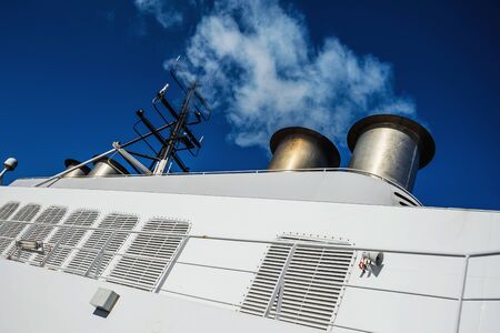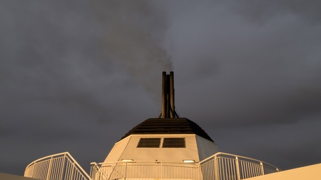 Exhaust pipes of regular ferryboat which runs between Germany and Denmark.