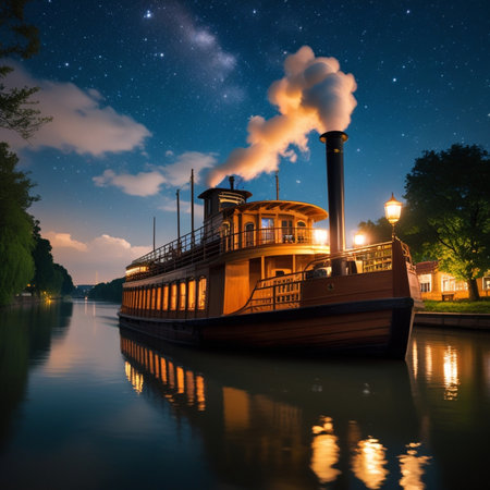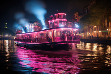 paddle steamer boat with neon decorations professional photography
