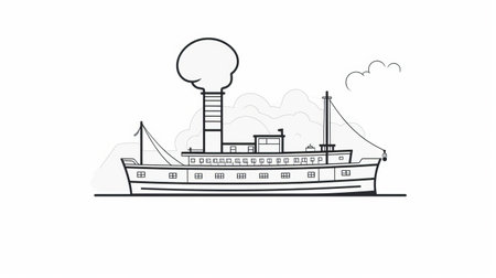 a classic steamship with smoke in the background, depicted in a simple line drawing style reminiscent of tarsila do amaral's artwork. this animated gif captures the essence of jan berenstain's clean-lined illustrations, showcasing clean and sharp inking techniques. ai generated