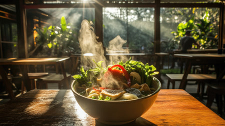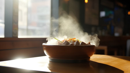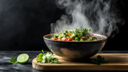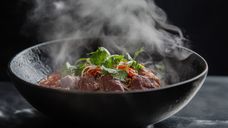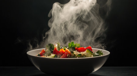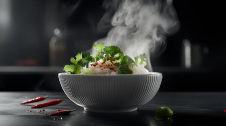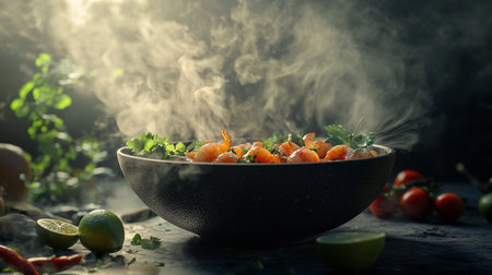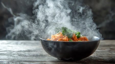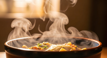 A bowl of food with steam rising from it with Generative AI