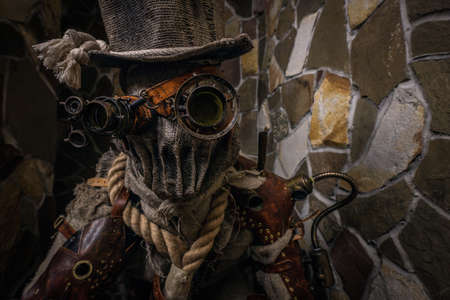 Futuristic character cyborg stalker. Art Photography in steampunk style.