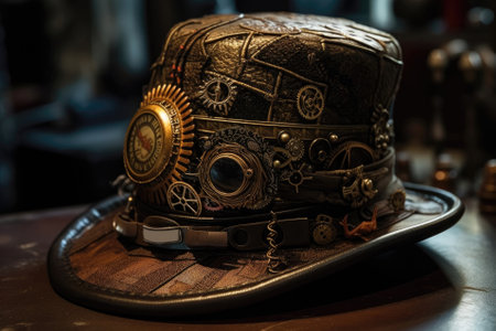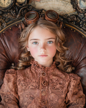 Beautiful steampunk teen girl over vintage background, model in the style of a steampunk in a beautiful creative studio. Fashion, style