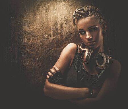 Attractive steampunk girl with headphones