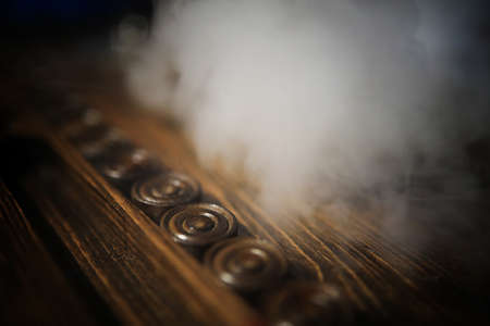 Concept. Smoke enveloped the head man. Portrait of a Bearded, stylish man with smoke. Secondhand smoke.