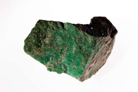 jadeite- monoklinski alkaline pyroxene mineral on the white background