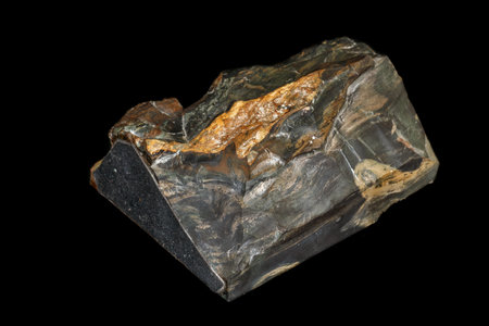 Macro shooting of natural mineral rock specimen - raw iron ore on black background