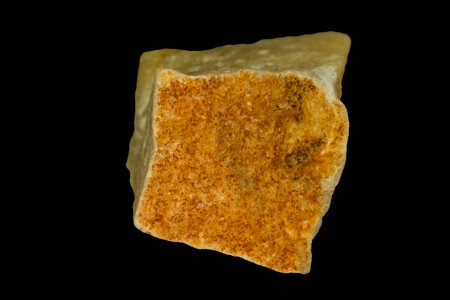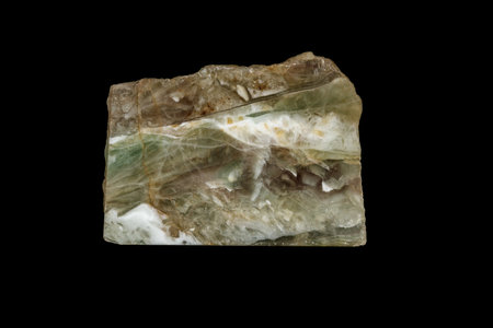 sample of raw trass chernomorite mineral on black background close up