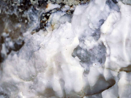Diverse colored quartz rock in cut of earth. Deposits of gray, white, orange quartz. Untreated semi-precious stones of the chalcedony variety in various stone deposits and layers of different rocks.