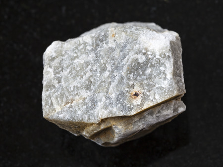 sample of raw granite mineral on black granite background close up