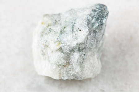 closeup of sample of natural mineral from geological collection - raw Apatite rock on white marble background