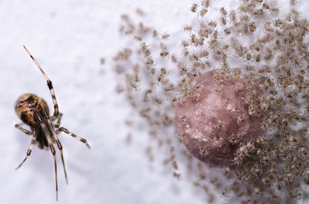 Close up brown widow spider (Latrodectus geometricus) and nest in nature
