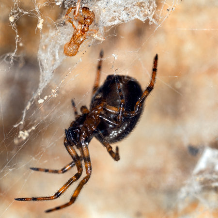 Parasteatoda tepidariorum, the common house spider or American house spider closeup.