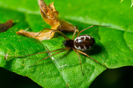 Common black house spider walking on its cobweb or spider's web with nature background, Selective focus.