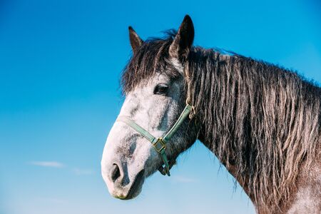 Close Up Of Horse On Blue Sky Background