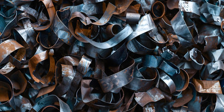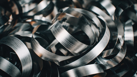 This image showcases a close-up view of shiny metallic shavings, creating intricate patterns and textures, ideal for industrial and artistic uses.