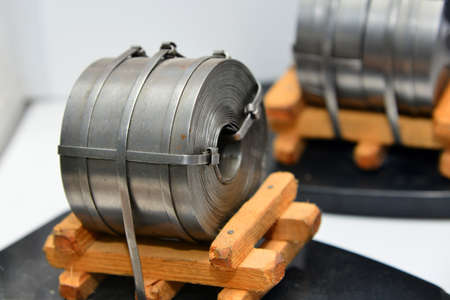 Steel sheets rolled up into rolls. Export Steel. Packing of steel for transportation.