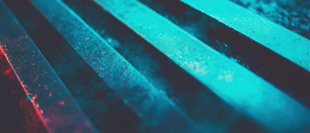 A collection of industrial metal bars stacked neatly on a textured surface, showcasing cool tones and sleek lines, ideal for manufacturing or technology themes.