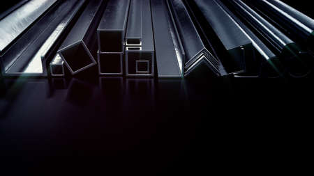 Black metal profile tubes on the black background.