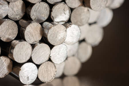 Pile of aluminum bar close-up