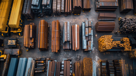 A vast warehouse efficiently manages the logistics of steel transportation. Rows of steel beams and materials are organized meticulously for optimal access and delivery.