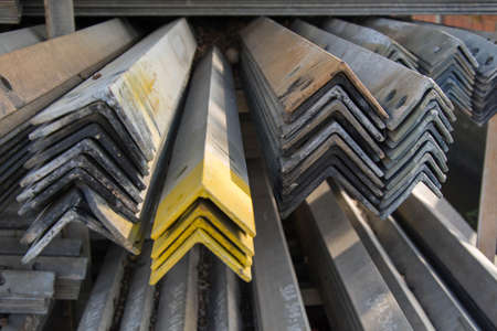 Metal profile angle in packs at the warehouse of metal products, Russia
