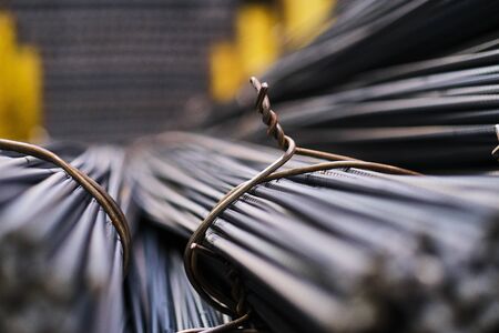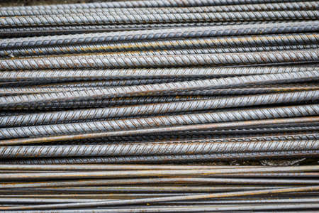 Closeup steel rebar used in construction concrete , Shooting for background or texture