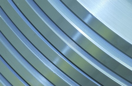 rolled metal pieces with colored lighting ready to be machined