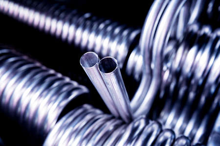 Abstract industrial background of metal pipes construction.