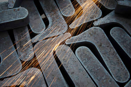 Grinding metal construction in workshop