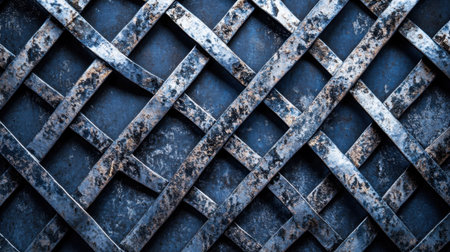 This image showcases an intricate crisscross pattern of metal strips with a rustic finish, ideal for backgrounds, artwork, or design projects.