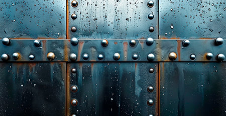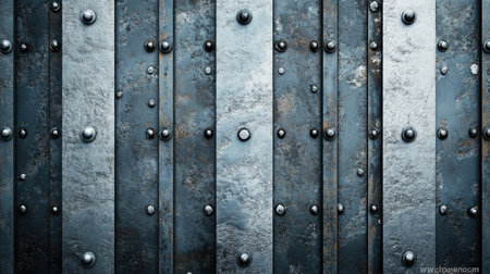 A riveted metal panel background with evenly spaced bolts and visible seams, offering a robust and durable industrial look.