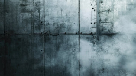 Captivating texture of a metallic wall featuring an industrial finish, enhanced by a smoky ambiance, ideal for creating urban and grunge-related designs.