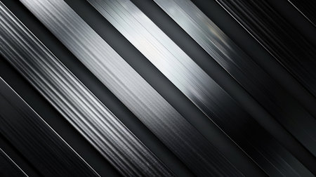 Metallic silver stripes on a black canvas, generating a sense of speed and dynamism. Generative AI