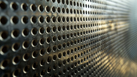 A detailed shot of a perforated metal sheet revealing the varying sizes and angles of the perforations creating a visually dynamic texture