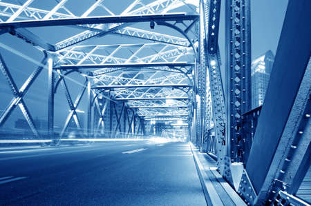 Night traffic lights inside of the Garden Bridge of shanghai china.