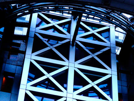 Steel X-frame exterior. Shooting Location: Shinjuku Ward, Tokyo