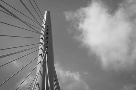 Cable-stayed bridge in Utrecht, Netherlands. black and white.