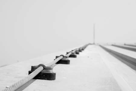 lightning copper cable on roof black and white tone construction concept background