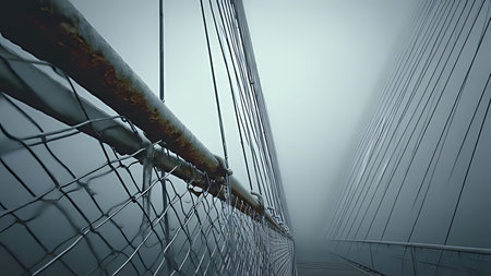 Fragment of suspension bridge with steel cables