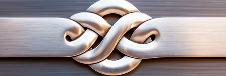Metal knot design showcasing elegant intertwined structure with shiny finish. Close-up setting highlights craftsmanship and texture.