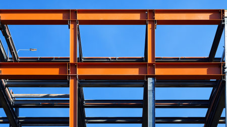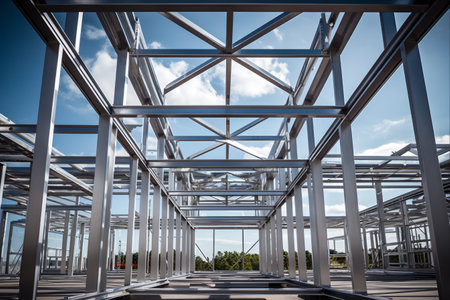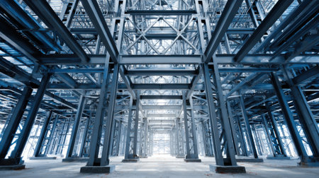 Abstract view of a steel framework highlighting the elegance of architectural design and robust engineering principles in a minimalist style.